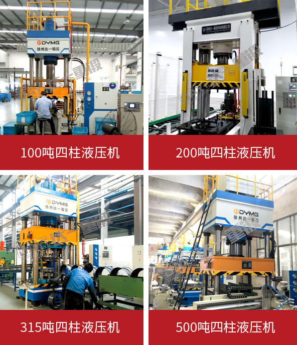 四柱油壓機(jī)也稱:四柱壓力機(jī)、四柱沖壓機(jī) 噸位有100噸、200噸、315噸、500噸四柱液壓機(jī)